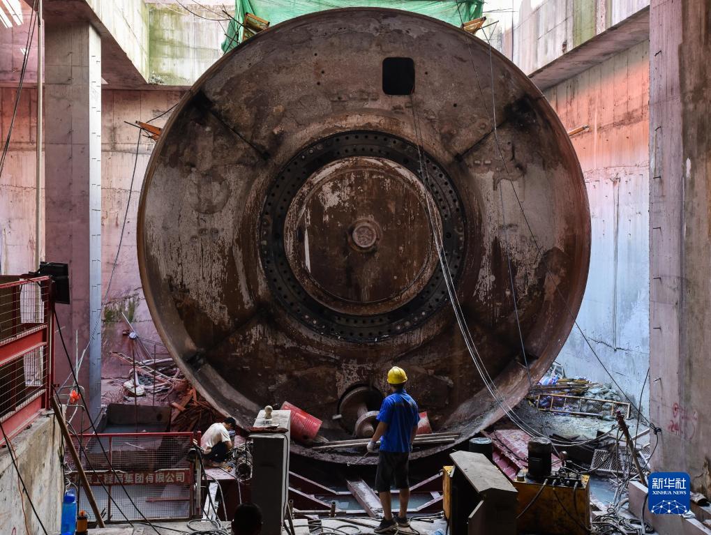 10月16日,施工人員為出洞的“開(kāi)路先鋒1號”盾構機進(jìn)行分解吊裝。