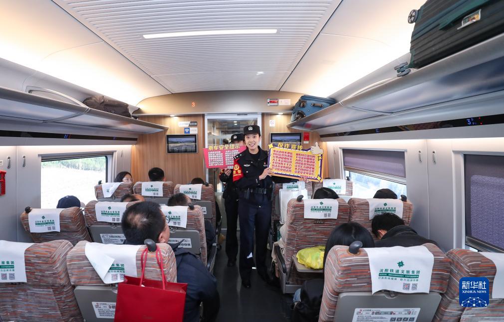 當日,沈陽(yáng)鐵路公安局沈陽(yáng)公安處乘警支隊女子乘務(wù)大隊民警走進(jìn)高鐵車(chē)廂向乘客進(jìn)行反詐騙宣傳和安全乘車(chē)宣傳,增強乘客保護人身和財產(chǎn)安全的意識。