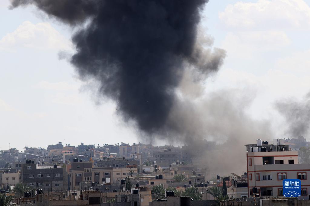10月15日,加沙地帶南部城市汗尤尼斯的建筑遭以色列軍隊空襲后升起濃煙。