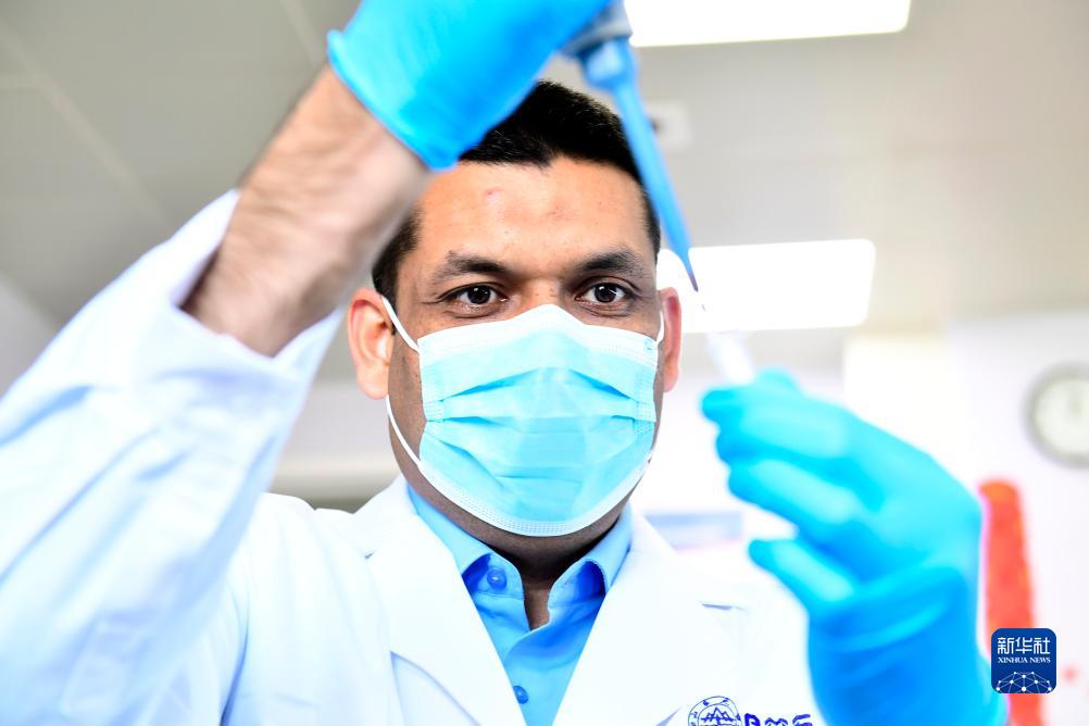 10月16日,在山東大學(xué)齊魯醫學(xué)院腫瘤研究聯(lián)合實(shí)驗室,默罕默德·沙巴茲在做實(shí)驗。