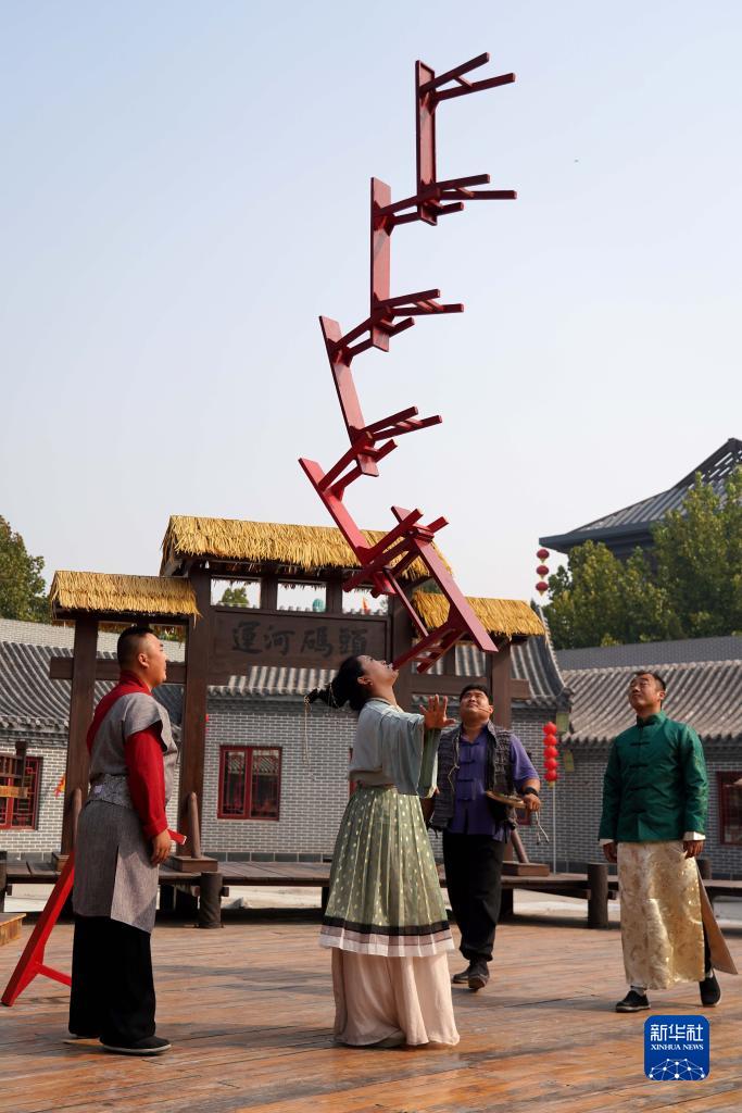 10月17日,雜技演員在吳橋雜技“九月廟會(huì )”上表演雜技節目。