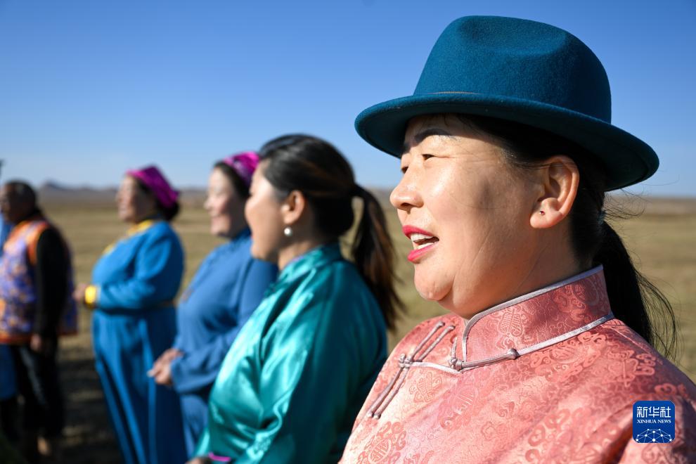 牧忙喂牛羊,閑時(shí)撫琴瑟。秋忙之余,道爾吉與父親明安寶會(huì )參加當地一項特色文藝活動(dòng)——“乃日”?!澳巳铡笨勺g為“禮樂(lè )”“娛樂(lè )”“聚會(huì )”,起源于元代,是一種以樂(lè )器歌舞為主的綜合性民間表演藝術(shù),被列入內蒙古自治區級非物質(zhì)文化遺產(chǎn)名錄。