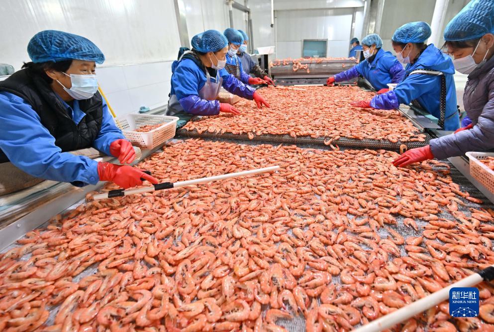 10月17日,工人在河北省唐山市曹妃甸區一家水產(chǎn)加工企業(yè)的南美白對蝦加工生產(chǎn)線(xiàn)上工作。
