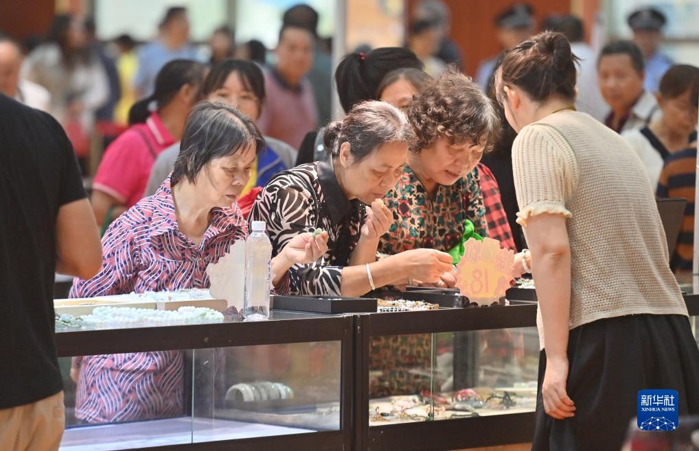 10月18日,觀(guān)眾在珠寶展上選購商品。