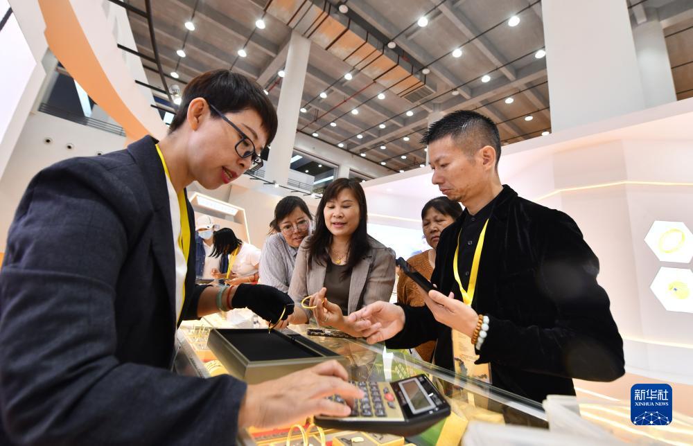 10月18日,觀(guān)眾在珠寶展上選購商品。