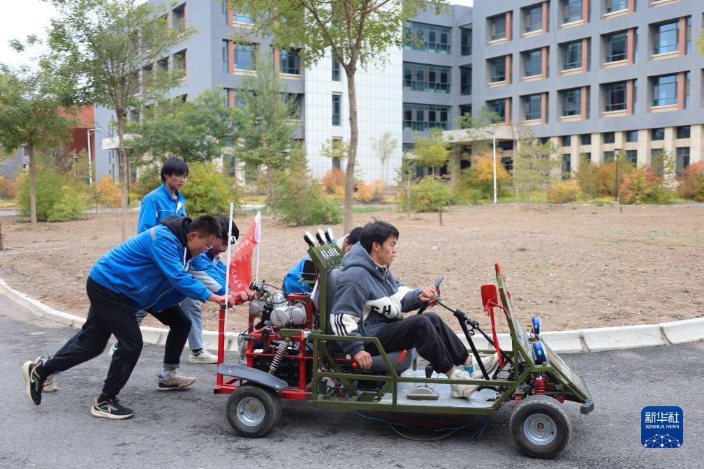 10月17日,在甘肅省蘭州新區科教園區,蘭州石化職業(yè)技術(shù)大學(xué)汽車(chē)工程學(xué)院的學(xué)生進(jìn)行創(chuàng )新操作課程。