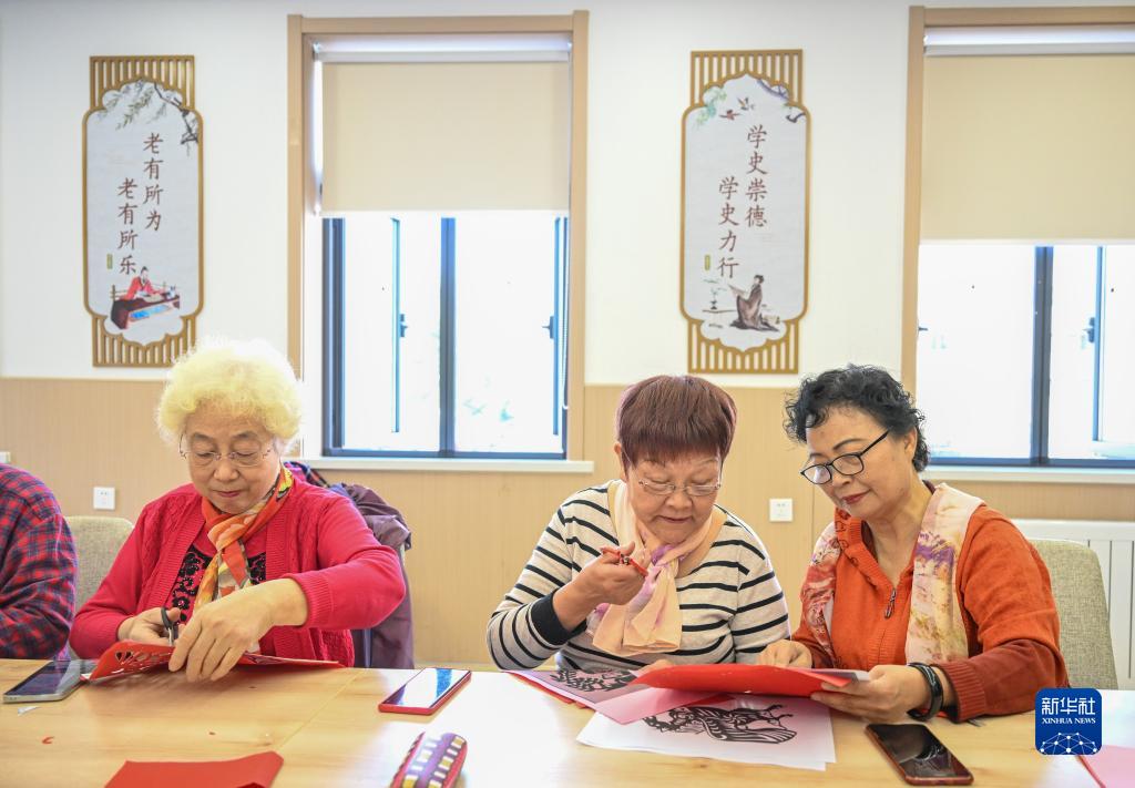 10月17日,老年人在天津市河西區越秀路街道居家養老服務(wù)中心進(jìn)行剪紙手工創(chuàng )作。