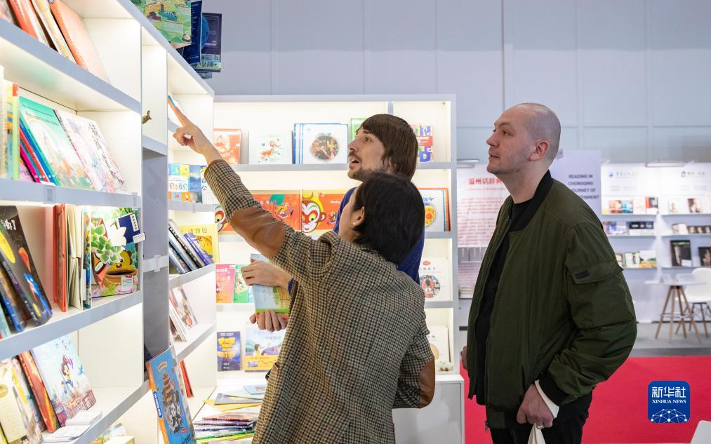 10月18日,在德國法蘭克福書(shū)展中國展區,參展商向參觀(guān)者介紹中國圖書(shū)。