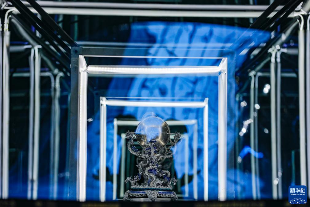 10月18日,在第81屆世界科幻大會(huì )主場(chǎng)館——成都科幻館內,兩名觀(guān)眾從藝術(shù)裝置作品《共生紀元》前走過(guò)。