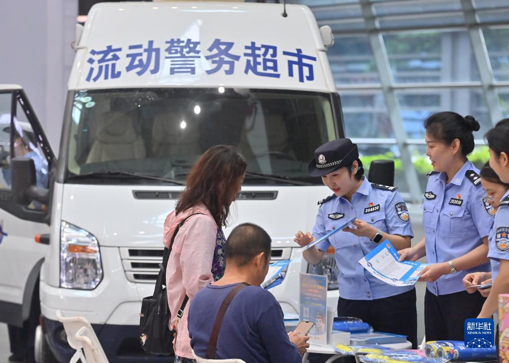 10月19日,在柳州市國際會(huì )展中心,市民在“流動(dòng)警務(wù)超市”咨詢(xún)、辦理業(yè)務(wù)。
