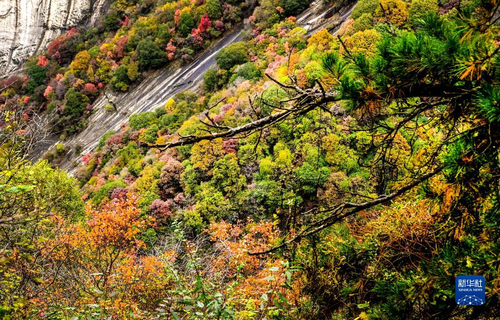 10月19日拍攝的華山紅葉景觀(guān)。