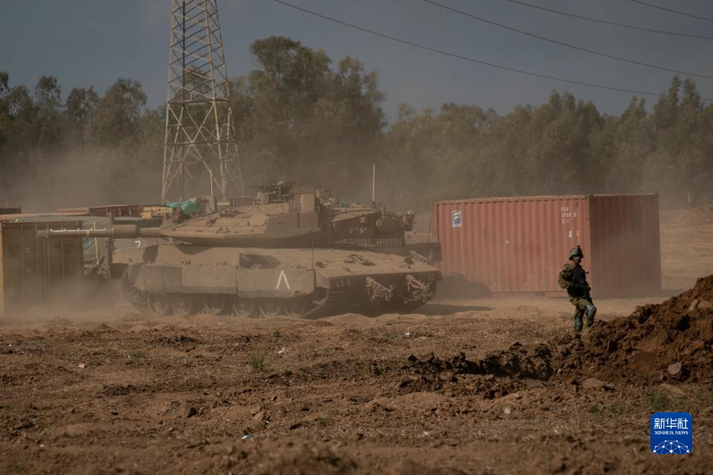 這是10月19日在加沙邊境以色列一側拍攝的集結的以軍戰車(chē)和人員。