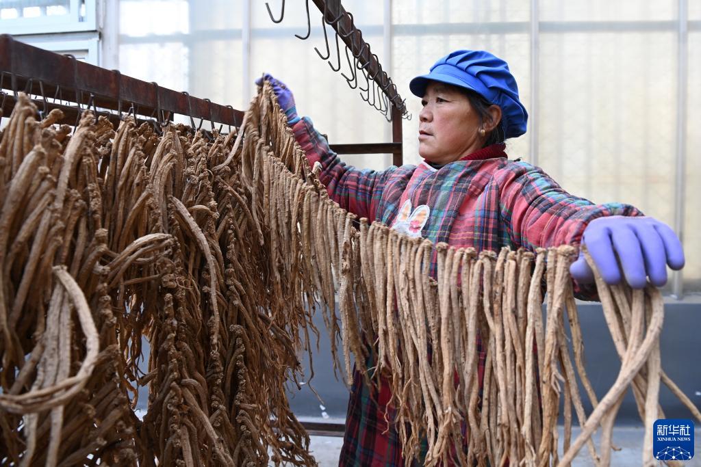 金秋時(shí)節,甘肅省定西市岷縣的黨參、黃芪等中藥材陸續豐收,當地中藥材企業(yè)組織工人加工晾曬。岷縣位于甘肅省南部,是西北中藥材主產(chǎn)區之一,全縣中藥材種植面積65萬(wàn)畝左右。