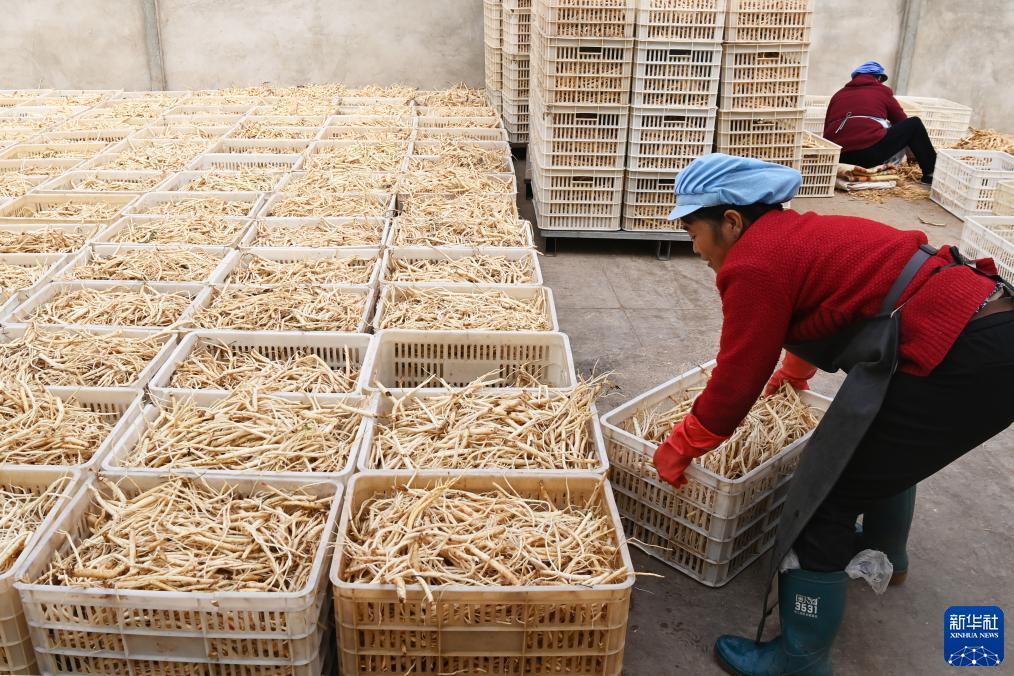 金秋時(shí)節,甘肅省定西市岷縣的黨參、黃芪等中藥材陸續豐收,當地中藥材企業(yè)組織工人加工晾曬。岷縣位于甘肅省南部,是西北中藥材主產(chǎn)區之一,全縣中藥材種植面積65萬(wàn)畝左右。