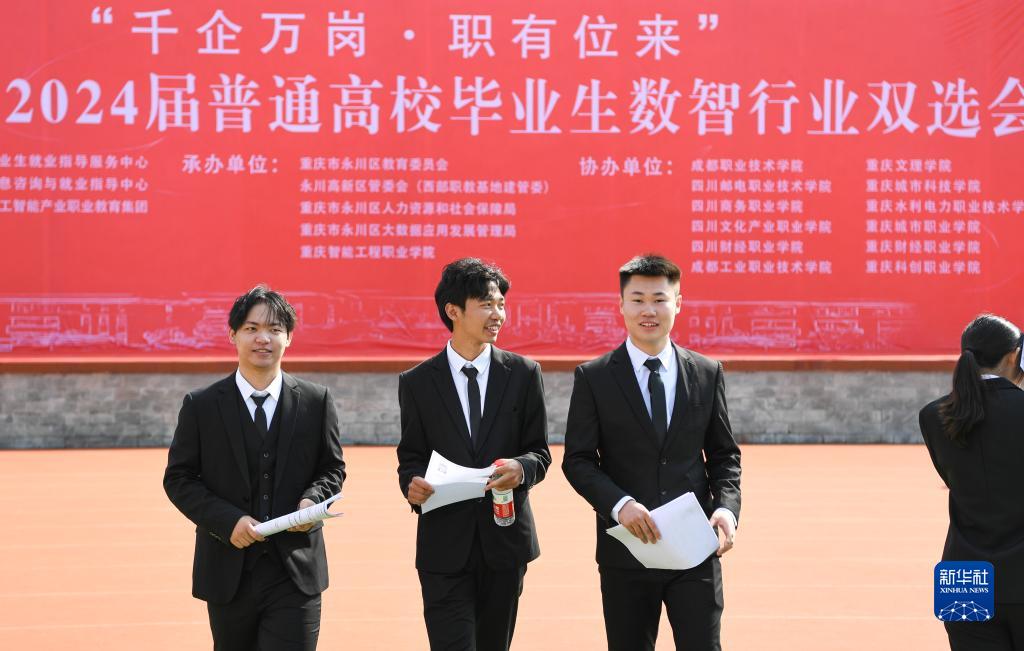 當日,成渝地區2024屆普通高校畢業(yè)生數智行業(yè)雙選會(huì )在位于重慶永川區的重慶智能工程職業(yè)學(xué)院舉行,來(lái)自全國的300余家用人單位為高校畢業(yè)生提供就業(yè)崗位。