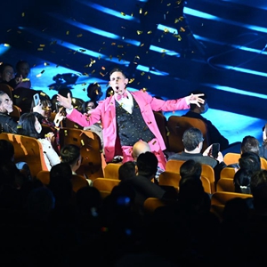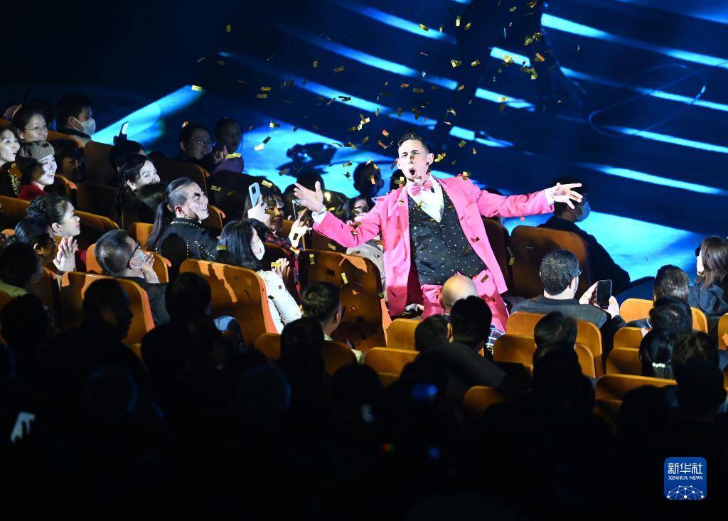 10月20日,演員在第十九屆中國吳橋國際雜技藝術(shù)節開(kāi)幕式上與觀(guān)眾互動(dòng)。