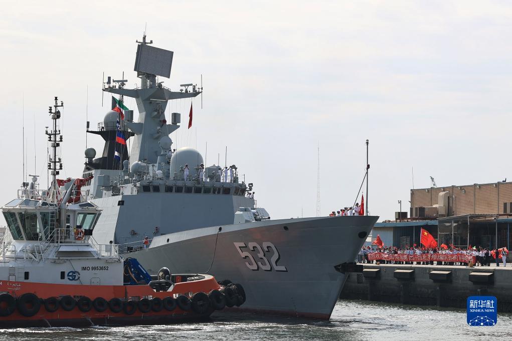 中國海軍第44批護航編隊荊州艦緩緩駛入科威特舒韋赫港(10月18日攝)。