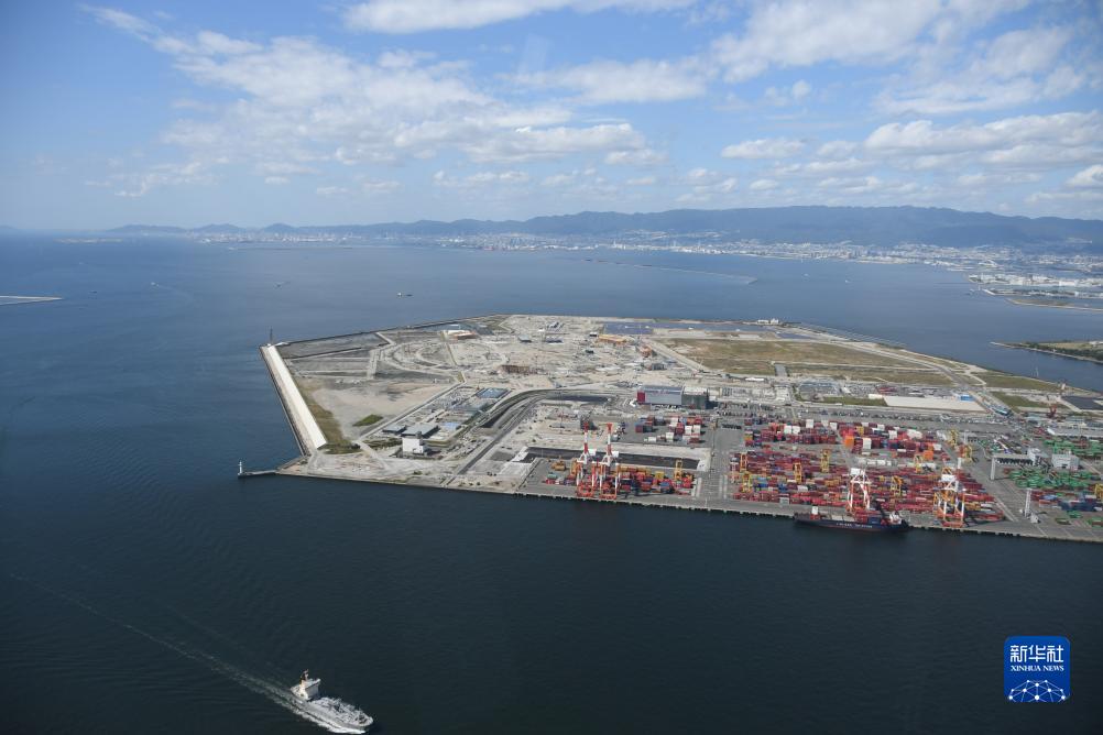 這是10月12日在日本大阪市人工島夢(mèng)洲航拍的建設中的2025年大阪·關(guān)西世界博覽會(huì )場(chǎng)館和配套基礎設施。