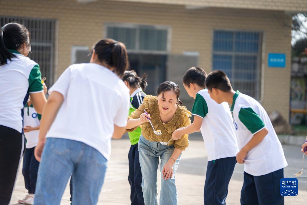 10月19日,常德市桃源特殊教育學(xué)校校長(cháng)彭敏(中)和學(xué)生一起進(jìn)行戶(hù)外活動(dòng)。