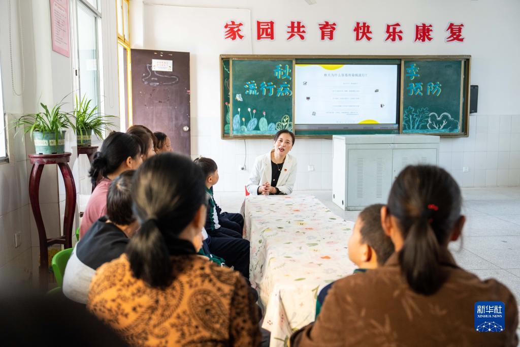 10月18日,常德市桃源特殊教育學(xué)校校長(cháng)彭敏(中)在家長(cháng)培訓活動(dòng)上與學(xué)生家長(cháng)溝通。