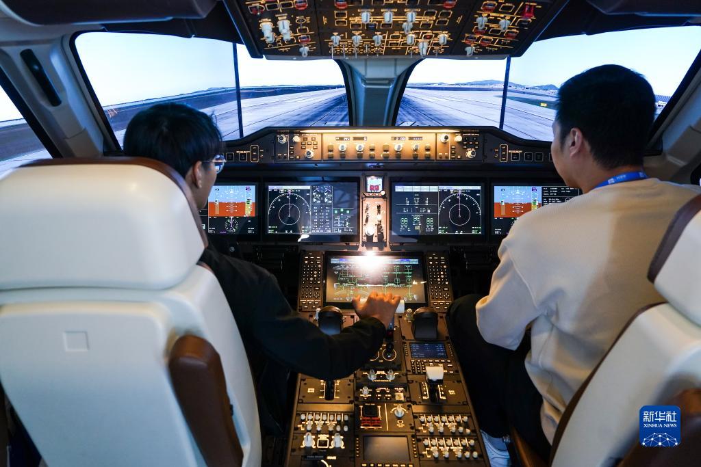 10月21日,市民在第十一屆中國(蕪湖)科普產(chǎn)品博覽交易會(huì )上體驗C919大飛機模擬駕駛艙。