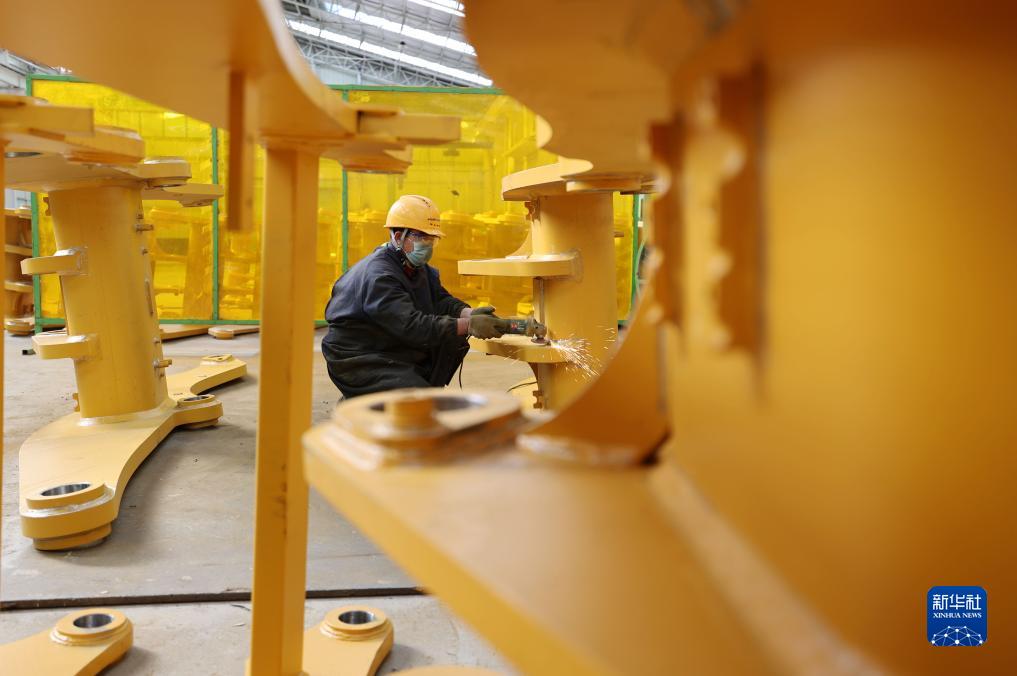 10月21日,在位于山東省臨沂市蘭山區的山東華星工程機械有限公司生產(chǎn)車(chē)間,工人在進(jìn)行打磨作業(yè)。