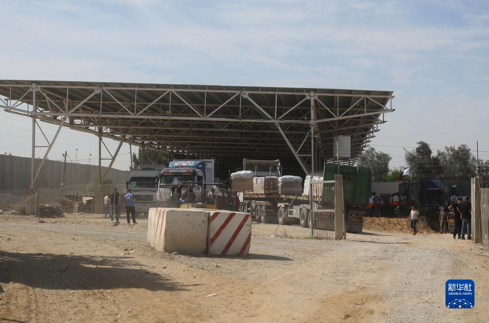 10月21日,裝載有人道援助物資的貨車(chē)通過(guò)拉法口岸進(jìn)入加沙地帶。