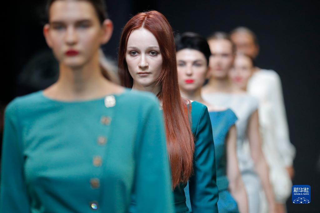 10月21日,模特在俄羅斯首都莫斯科舉行的伏爾加時(shí)裝周上展示時(shí)裝。