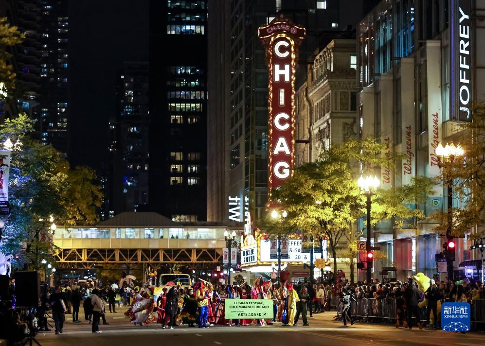 當日,美國芝加哥舉行名為“黑暗中的藝術(shù)”的萬(wàn)圣節游行。
