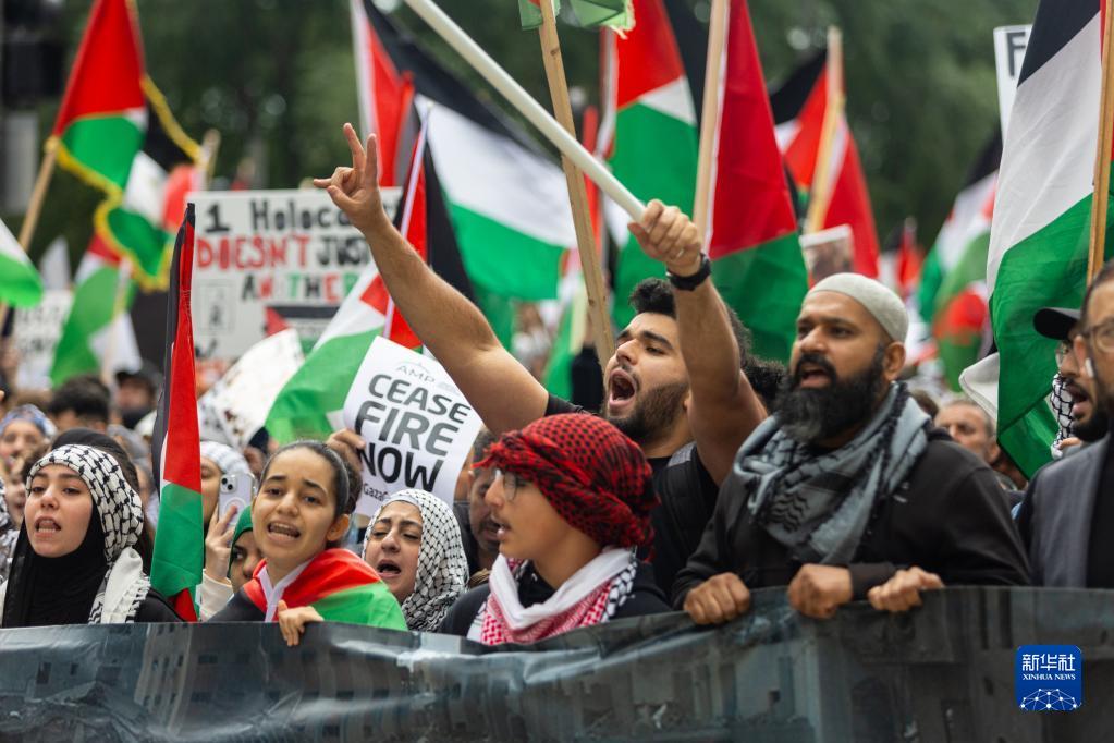 當天,芝加哥民眾走上街頭參加游行活動(dòng),表達對巴勒斯坦人民的支持,抗議以色列對加沙地帶的封鎖。