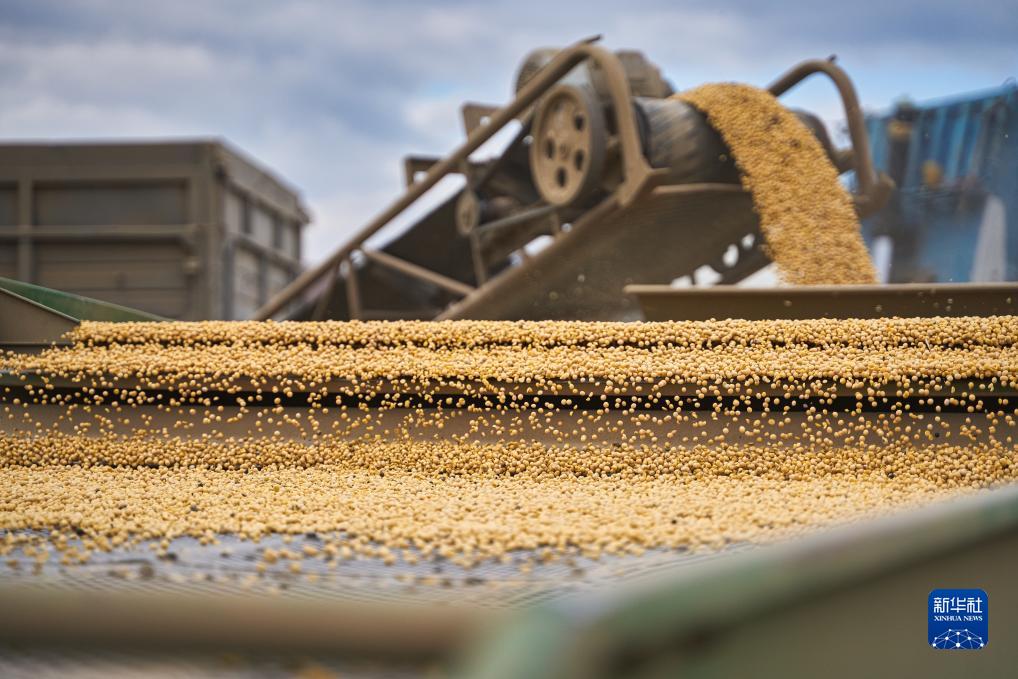 10月22日,俄羅斯遠東城市烏蘇里斯克一家農場(chǎng)用篩選機處理大豆。