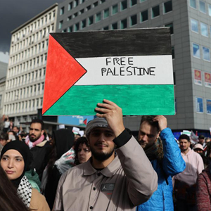 當日,眾多巴勒斯坦支持者在位于比利時(shí)布魯塞爾的歐盟總部附近舉行集會(huì ),聲援巴勒斯坦。