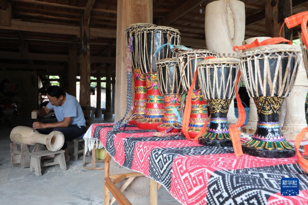 10月18日,云南景洪市勐罕鎮曼聽(tīng)村的非遺傳承人波應章在制作象腳鼓。他制作的象腳鼓很受游客歡迎。