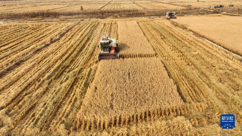 金秋時(shí)節,遼寧省阜新市彰武縣大冷鎮上三家子村的稻田里機聲隆隆,一片豐收的繁忙景象。