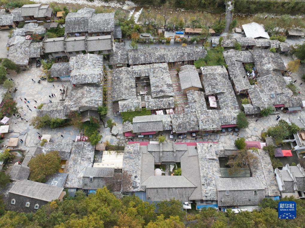 俯瞰朱家灣村終南山寨民俗文化村(10月21日攝,無(wú)人機照片)。