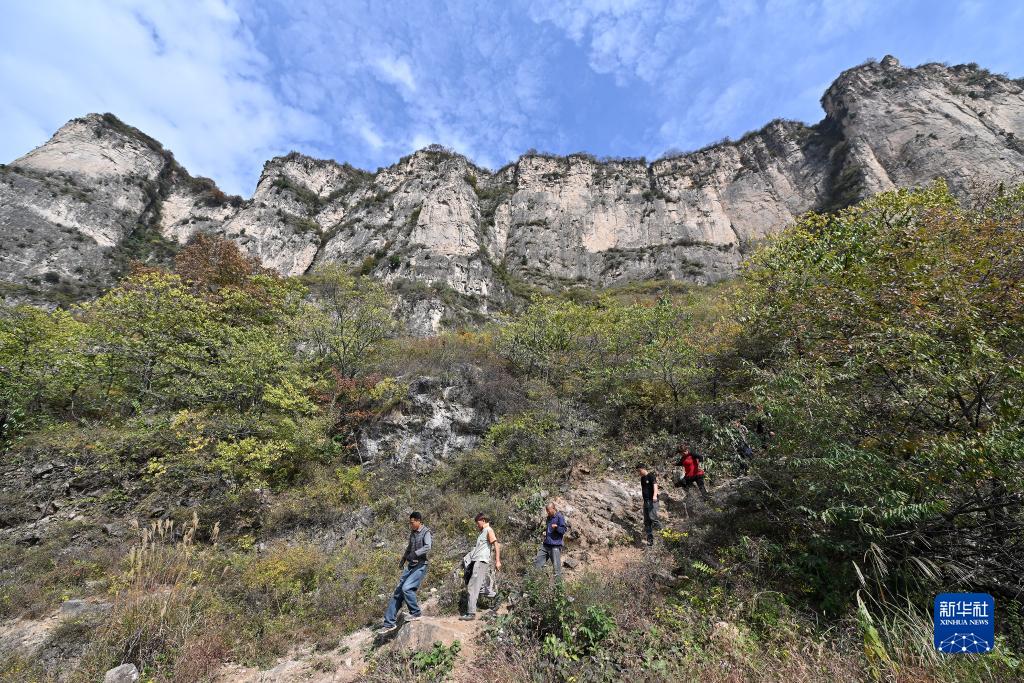 在壺關(guān)縣大峽谷鎮青龍峽村,村民們在修路間隙到山下休息(10月17日攝)。