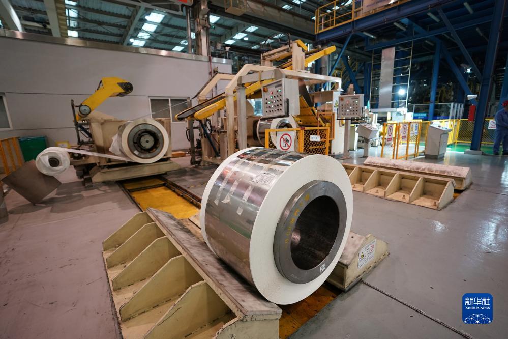 這是10月24日拍攝的中國寶武山西太鋼不銹鋼精密帶鋼有限公司車(chē)間一角。