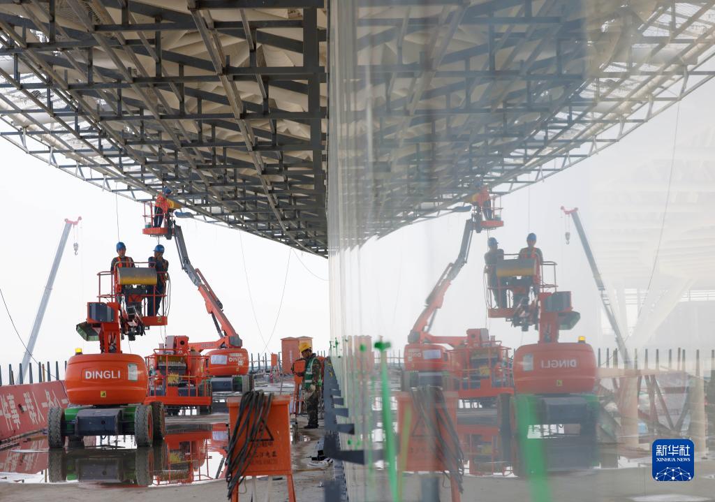 工人在雄安體育中心體育場(chǎng)施工(10月24日攝)。