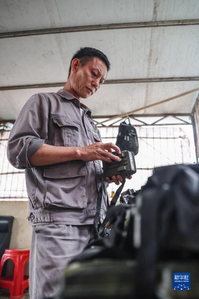 10月18日,海南長(cháng)臂猿監測隊隊員李文永在家中檢查紅外相機。