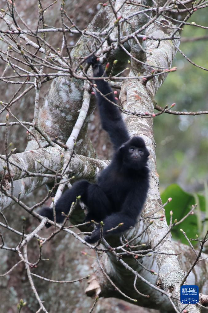 這是2022年在海南熱帶雨林國家公園霸王嶺片區拍攝的海南長(cháng)臂猿。