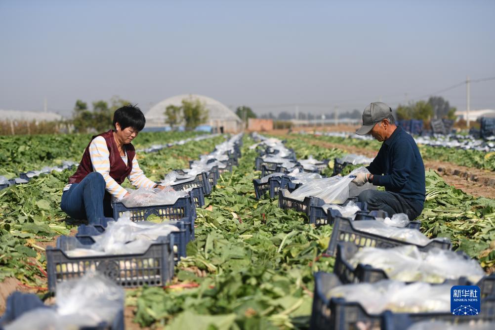 10月25日,辛集市辛集鎮辛洲蔬菜種植基地的工人在打包蘿卜。該基地種植的蘿卜按訂單銷(xiāo)往日本。