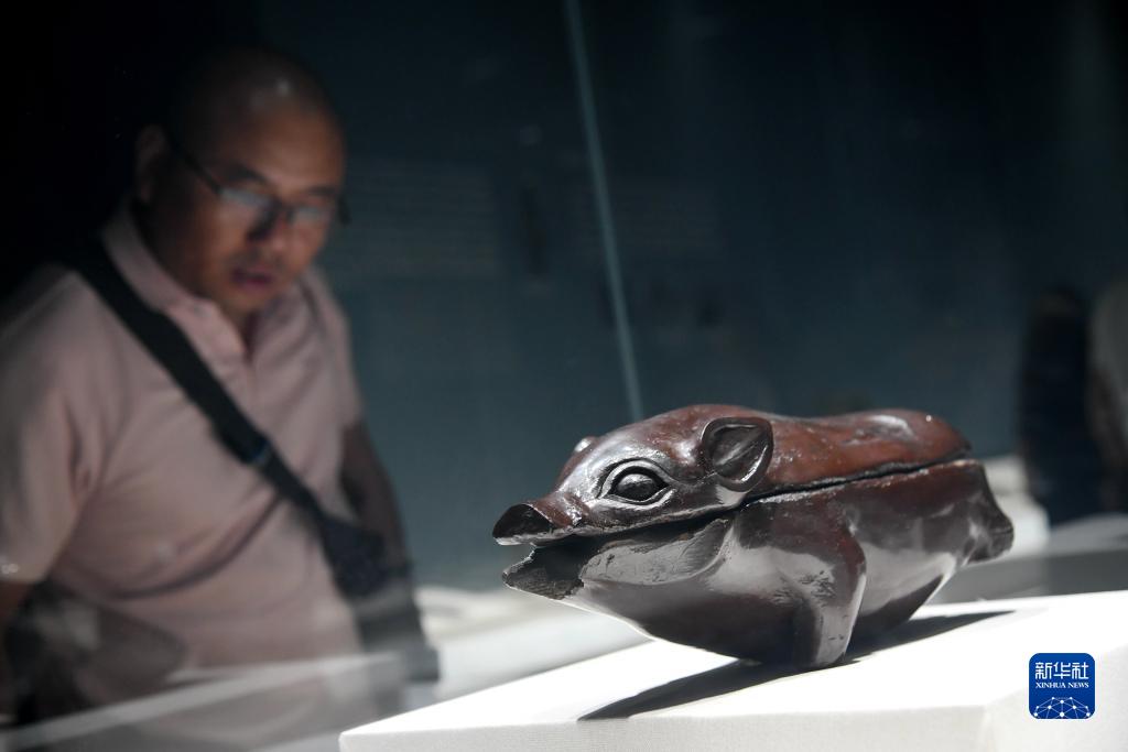 10月25日,觀(guān)眾在秦始皇帝陵博物院觀(guān)看荊州博物館館藏文物豬形漆盒。