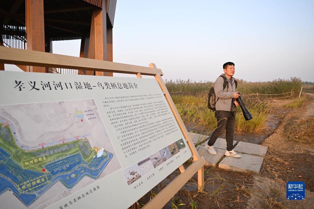10月24日,韓戰橋在雄安新區孝義河河口濕地觀(guān)察野生鳥(niǎo)類(lèi)。