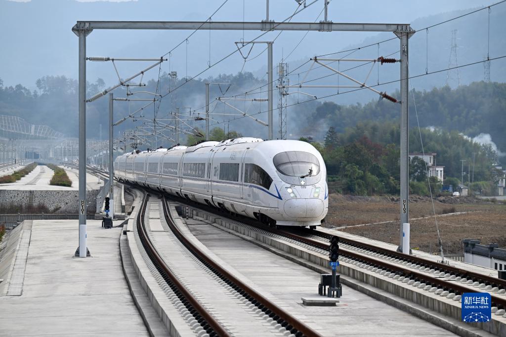 10月26日,試運行列車(chē)行駛在昌景黃高鐵線(xiàn)上。