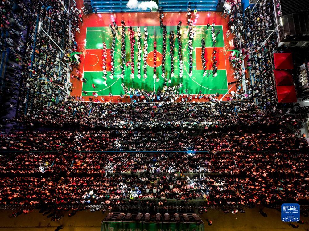 10月25日,全國和美鄉村籃球大賽總決賽開(kāi)幕式現場(chǎng)(無(wú)人機照片)。