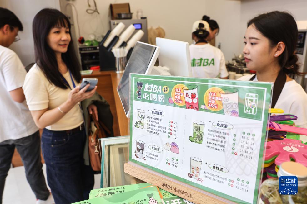 10月25日,游客在“村BA”主題茶飲店內購買(mǎi)飲品。