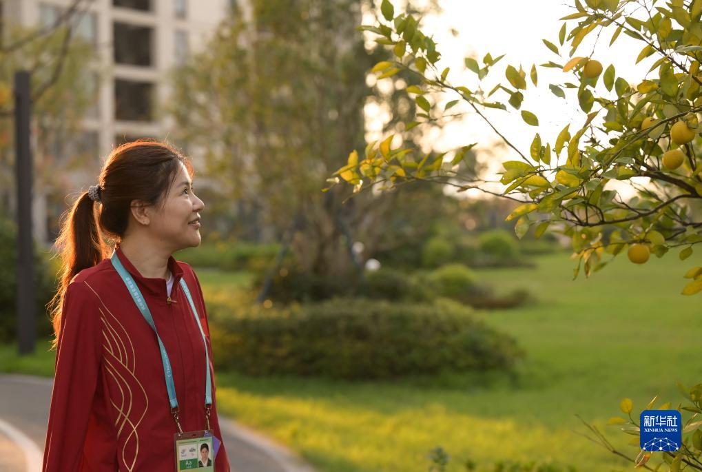 10月23日,盧冬在杭州亞殘運會(huì )運動(dòng)員村內散步。