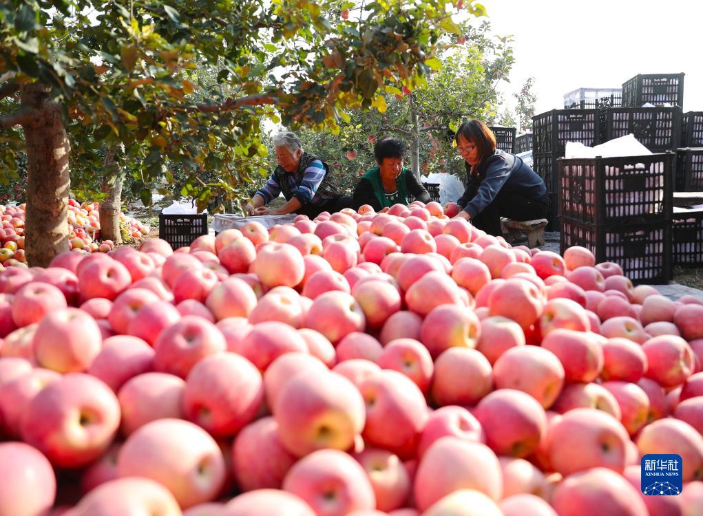 10月26日,河北順平縣南神南村果農在果園分揀采摘的蘋(píng)果。