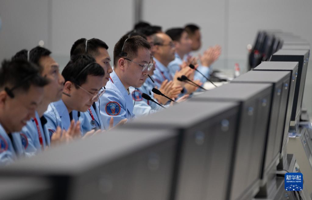 10月26日,在北京航天飛行控制中心,工作人員在緊張工作。
