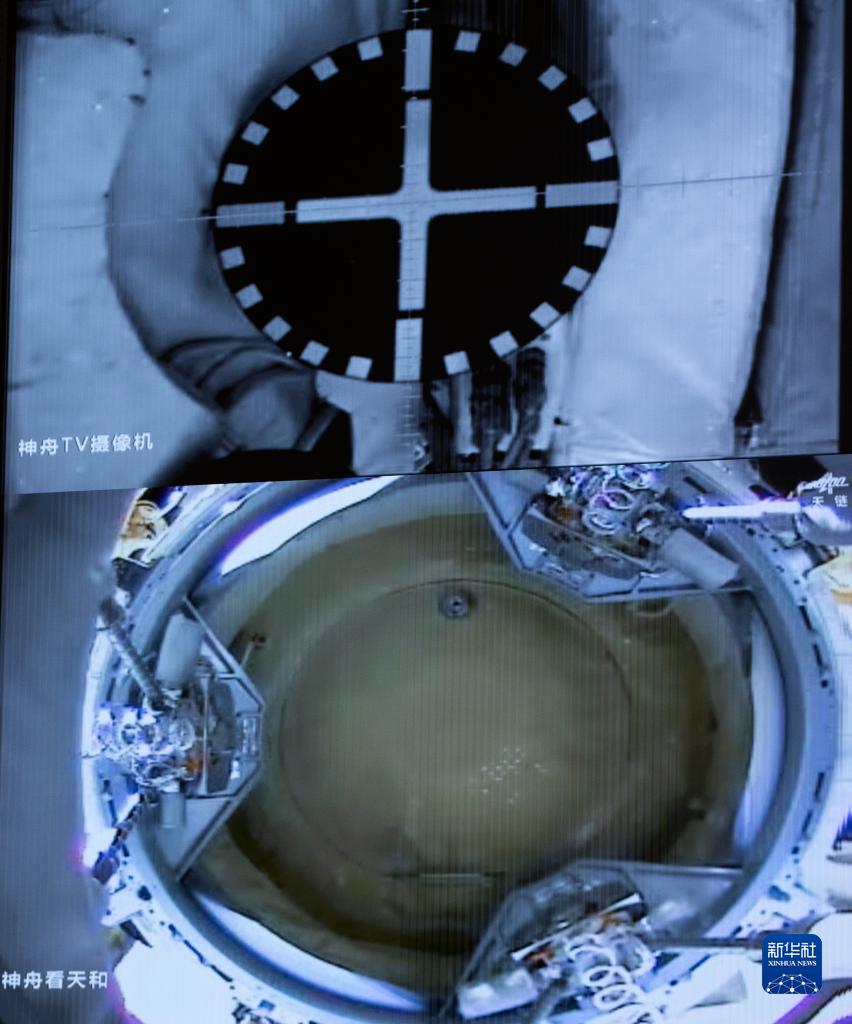 10月26日在北京航天飛行控制中心拍攝的神舟十七號載人飛船和空間站天和核心艙前向端口對接過(guò)程的畫(huà)面。